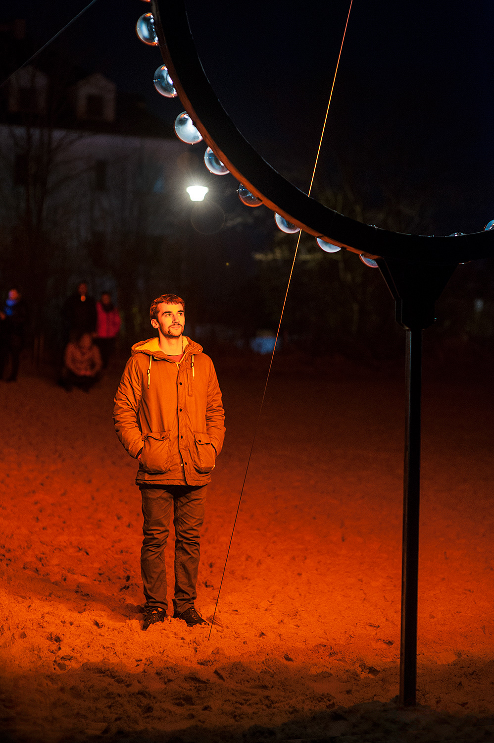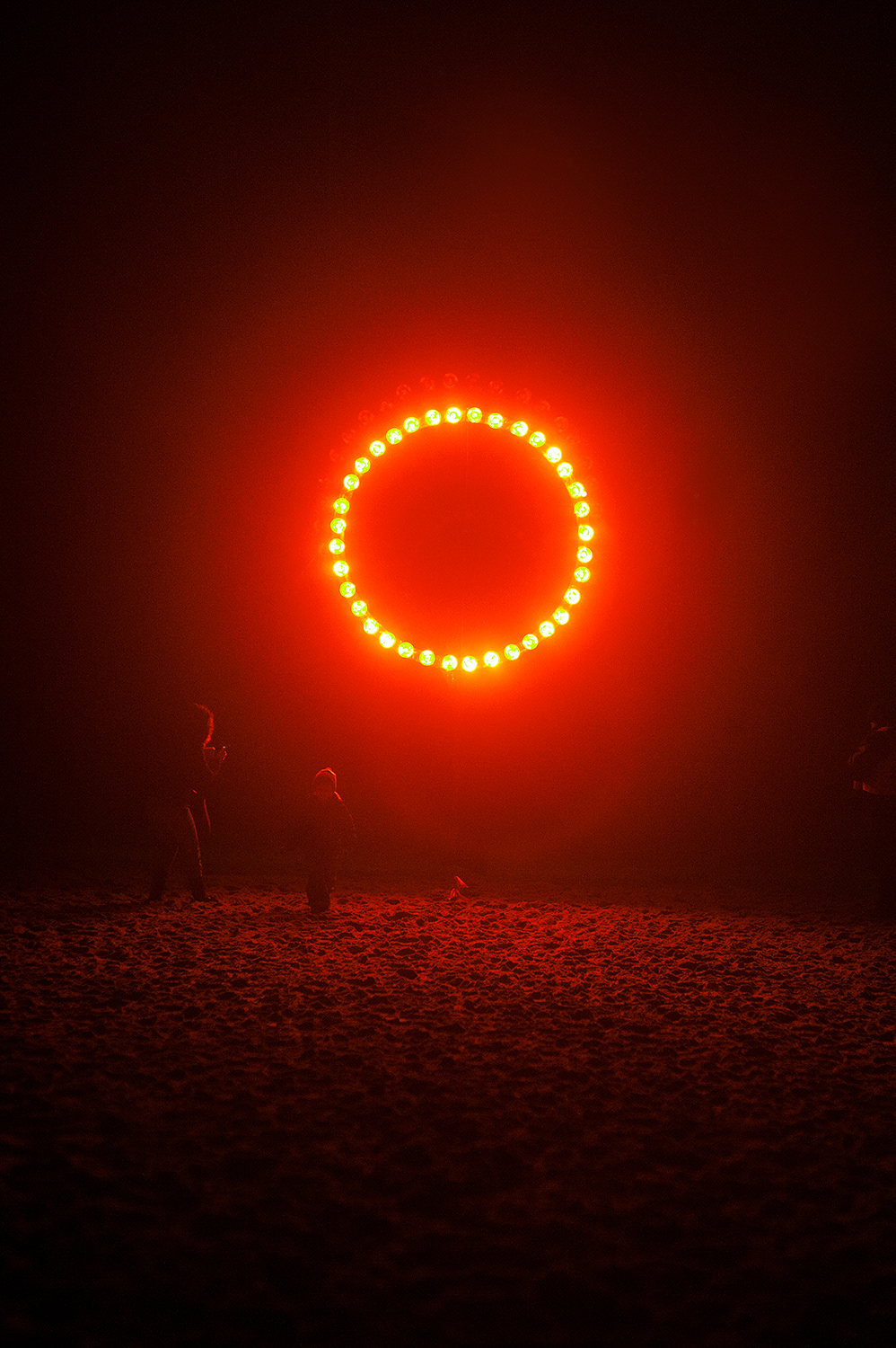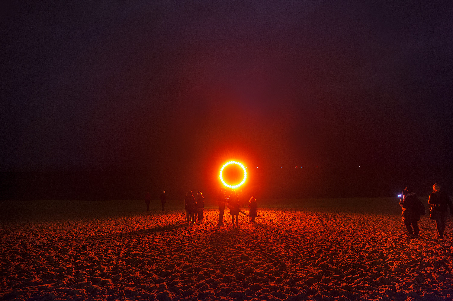 Laura Grudniewska recreates a solar eclipse against the backdrop of the black horizon. “Sun, which stands for light and warmth, is the most coveted and therapeutic element of relaxation,” says the artist. Its loss would be a disaster for any seaside resort. Although even ancient priests and scholars could precisely foretell when an eclipse was going to happen, even a momentary darkening of the sun resulted in widespread fear and panic. People were not sure whether the cool greyness enveloping the sky would not become a permanent feature of their lives. Anyone who has had an opportunity to experience a solar eclipse will agree that this phenomenon is in equal parts beautiful and terrifying: the sudden, all-affecting change influences our manner of seeing and experiencing the world with uncanny force. Apart from poignant sadness, symbolically etched in Grudniewska’s apocalyptic monument, the work is also supposed to bring relief in the form of therapeutic warmth emitted by illuminators placed on the statue’s rim. The combination of emotions provoked by the object may be compared to the rippling surface of the sea behind it: though it harbours a destructive demon, it can soothe even the most exhausted of hearts.